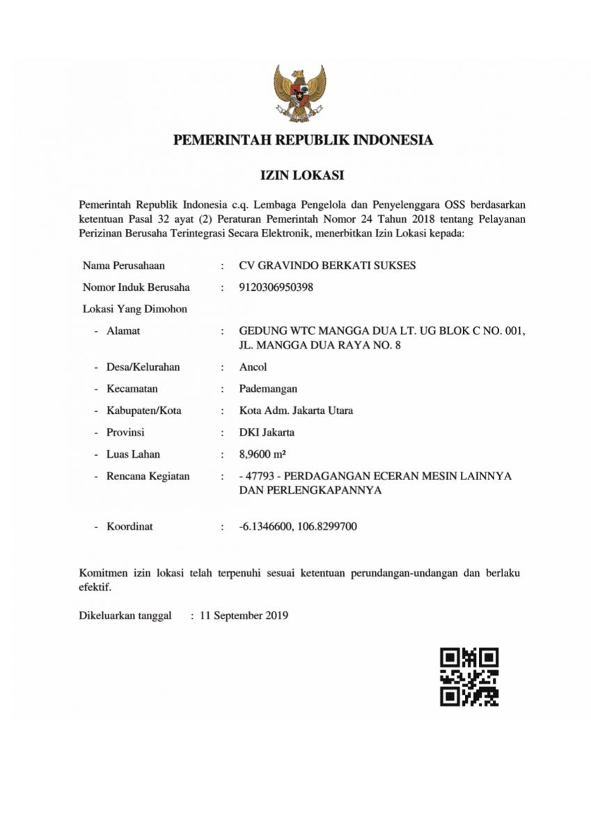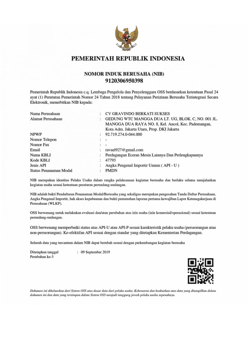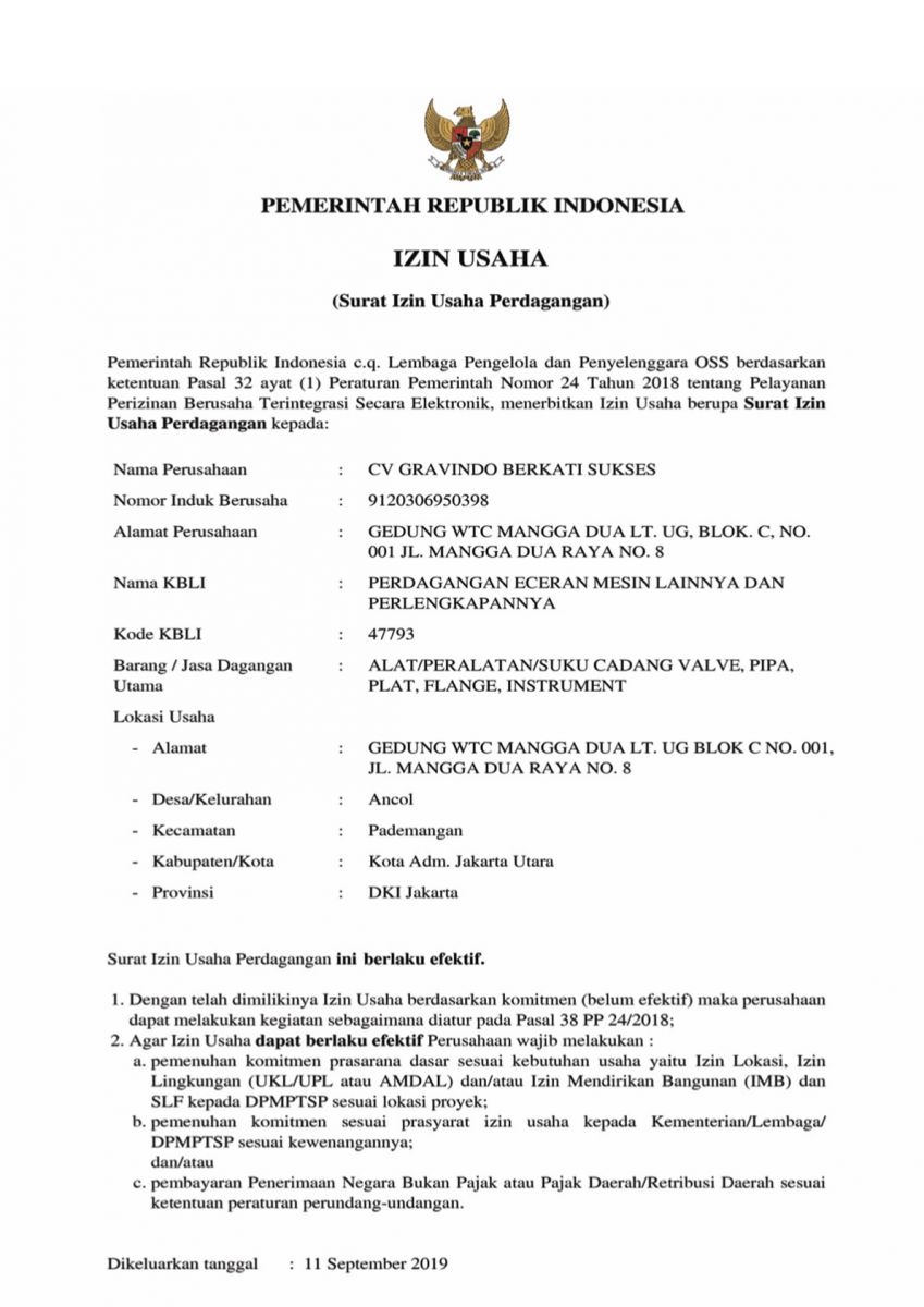 CV. GRAVINDO BERKATI SUKSES didirikan dengan Akta Notaris No. 15 Tanggal 24 Juli 2019, dihadapan Notaris HERI MARTONO, SH. Berkedudukan di Jl. Kasuari 2 No. 164 Perumnas 1 Bekasi.